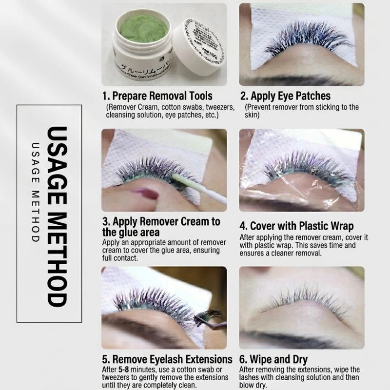 (Remover Cream, cottons wabs, tweezers, cleansing solution, eyepatches, etc.)