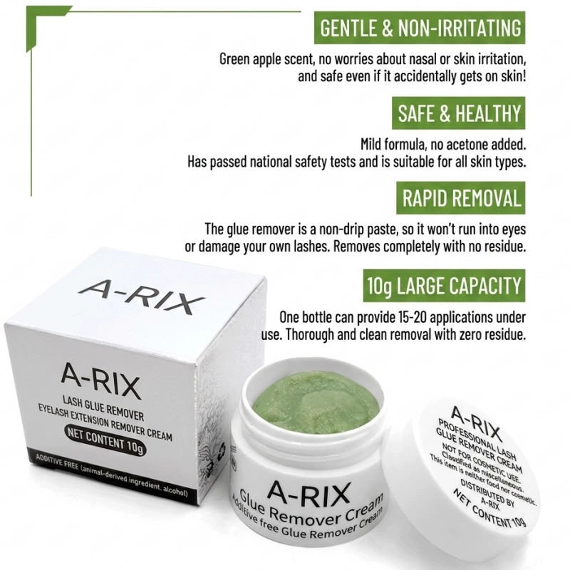 The glue remover is a non-drip paste, so it won’t run into eyes or has any bad effects to your own lashes. Removes completely with no residue.
