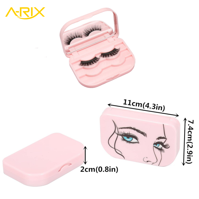This eyelash storage box is a small, strong, and cleverly made container.This case is made to hold and keep up to three pairs of false eyelashes safe. This eyelash cas has a mirror inside and closes tightly with a magnet. The case protects your lashes, keeps them clean, and makes sure they are always ready to wear. It works great for everyday use and is also ideal for travel.It adds great convenience to your beauty routine.