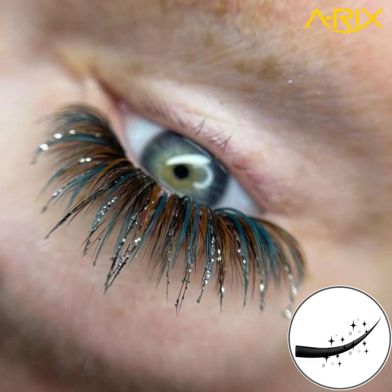 Glitter lash is really a good choice for eyelash salon when festival season or special date coming. Glitter lash dip in anime spikes in different colors of glitters. So we don’t need to DIY when do the extension process. So we don’t need to buy more products like: glitter powder and glue. We can also do mix color tarys: Pink, green, blue, silver, gold, purple etc… We have light marcaron color tone and deep color tone. These attention-grabbing lashes are perfect for a special pop of color, to bring out the bling and shine. Glitter Lashes can also be used as a color highlight and can be trimmed if your clients desire a shorter look. This lash is easy to use, you can apply several hair on the end of eyes. Or apply evenly on the eye as anime spikes. Another choice is apply several hairs on black and clolor set. Highly DIY creative lash look.