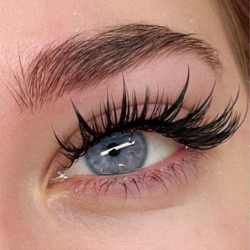 Wet, possess a dramatic sheen; Spiky break the soft curve of conventional lashes, instantly enhancing the tension at the outer corner of the eye. The half-lash design precisely focuses on the outer corner of the eye, creating a layered effect that’s “seamless when open, captivating when closed.”